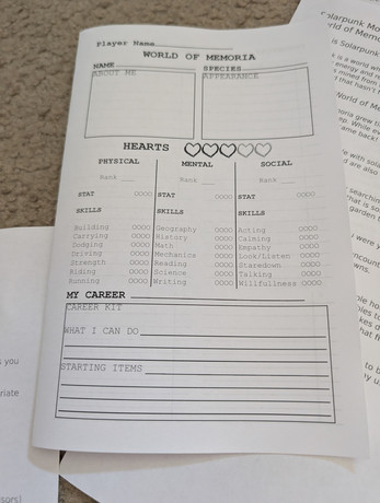 - Create a more basic character sheet (will likely be half page) for the base game system (not Memoria Specific)
